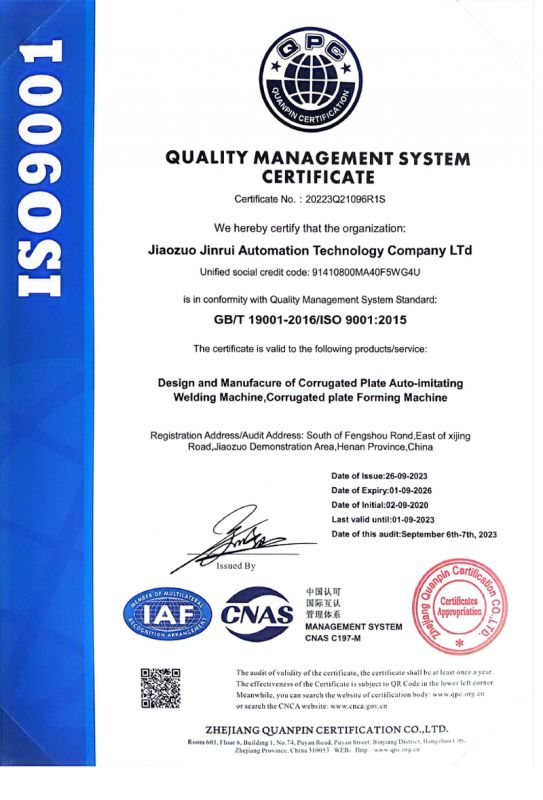 質量管理體系認證證書